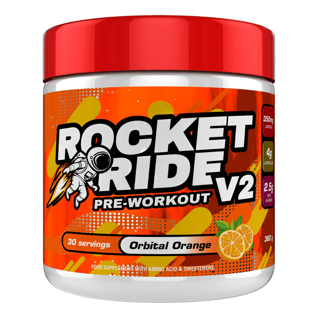 RocketRide V2 360g – Orbital Orange is built for sessions where you want maximum drive — energy, focus and pump support in one scoop.